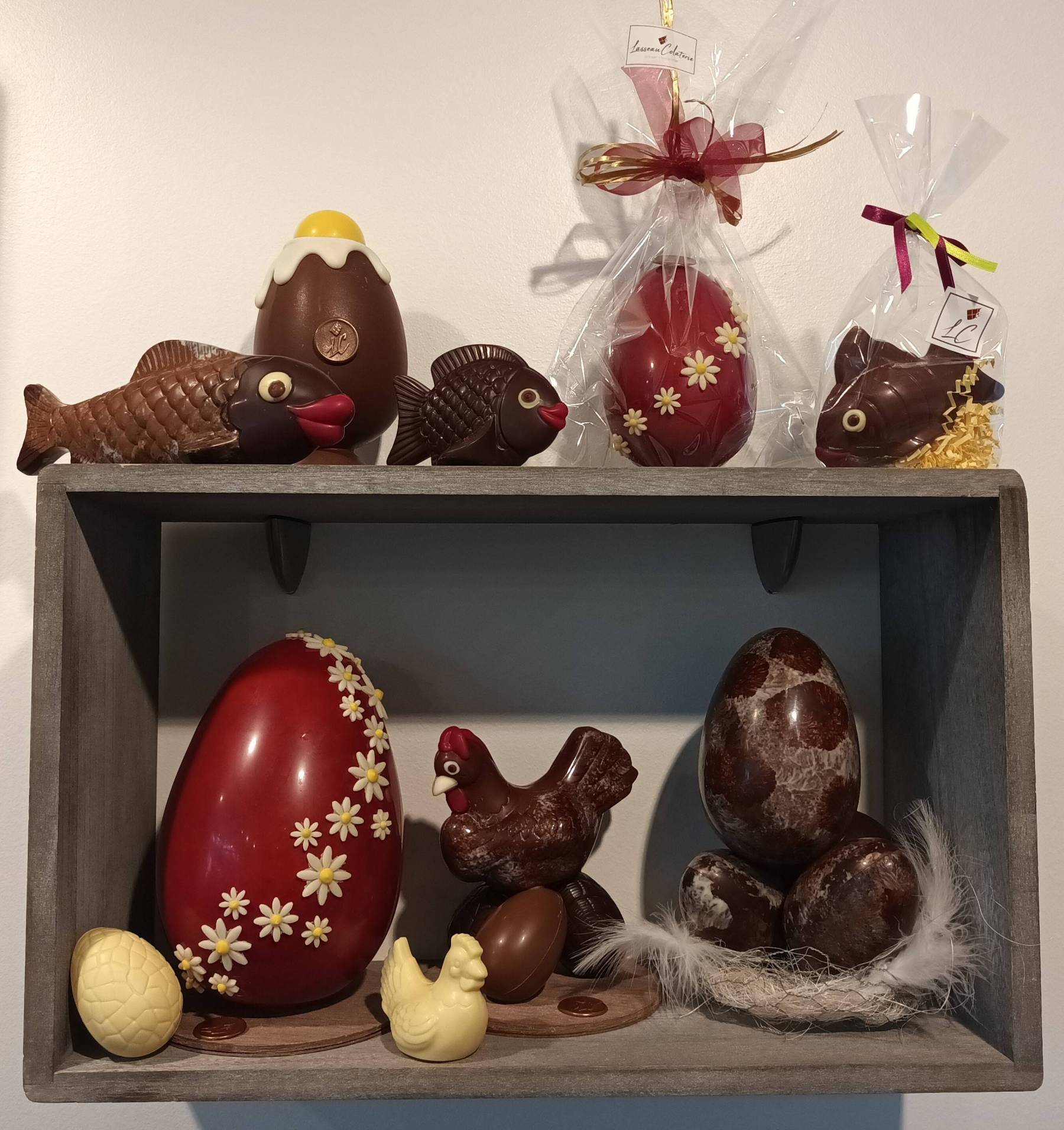 Lasseaucolaterie vous présente sa gamme de produits pour Pâques, avec tous ces moulages en chocolat noir, lait ou blanc.